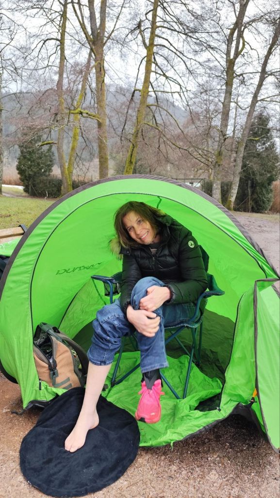Gwendo l’a bien vu : aujourd’hui, Gallou avait décidé qu’on faisait du camping, et Constance l’a laissée expérimenter. Mais sa râlerie n’a trompé personne : elle n’est pas adepte du camping fluo sous la pluie.